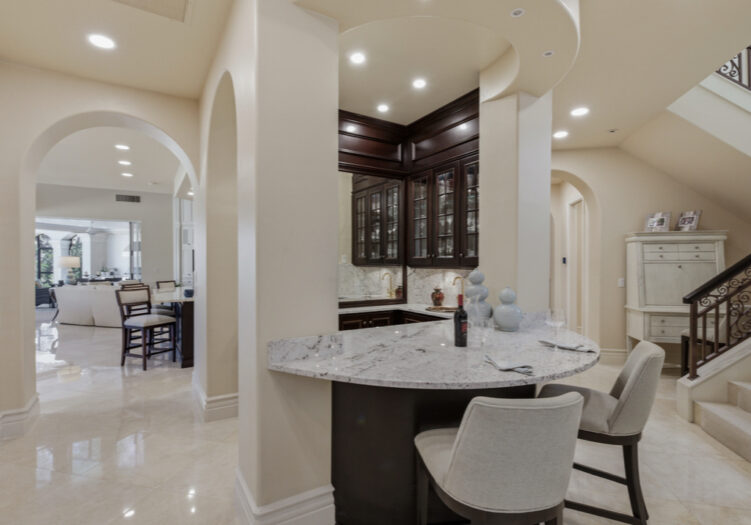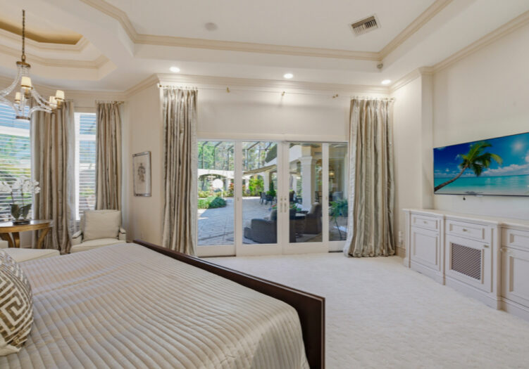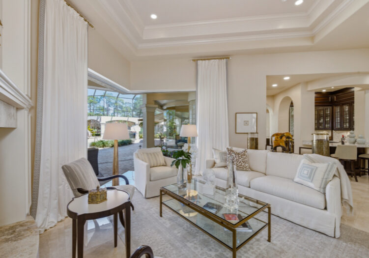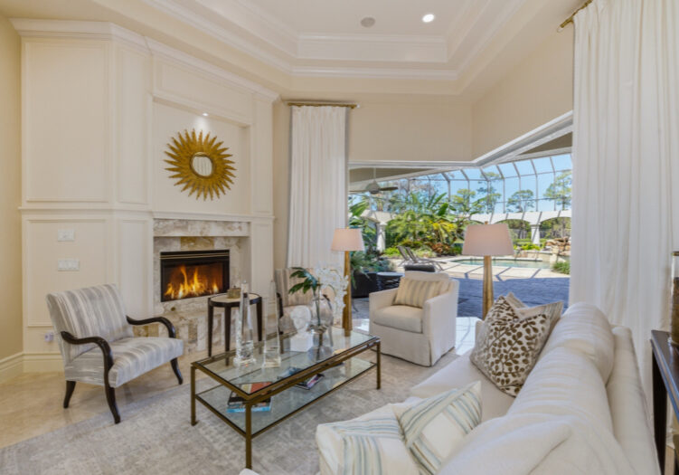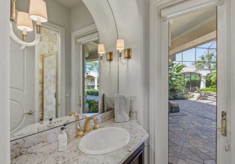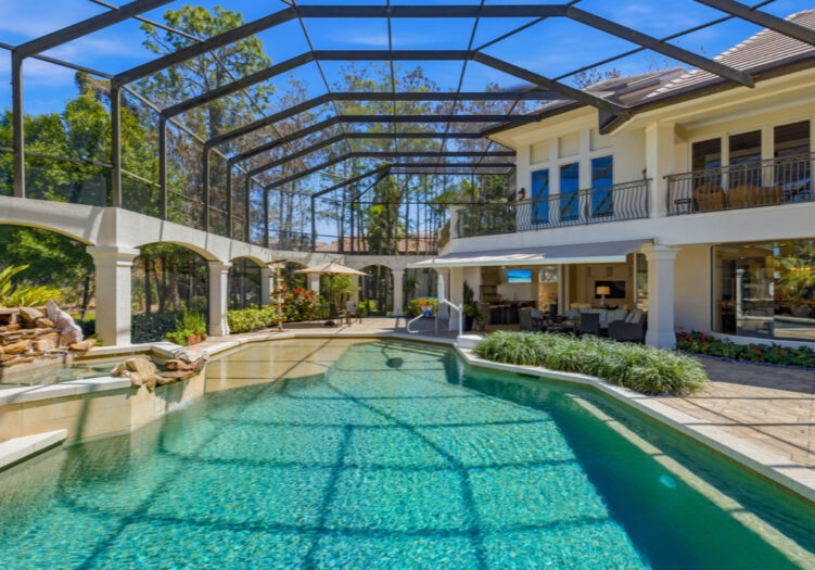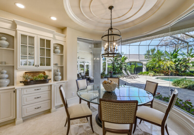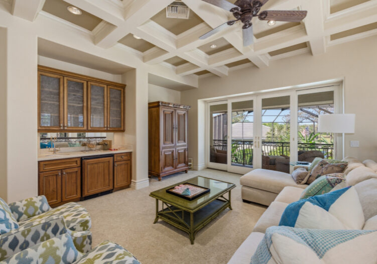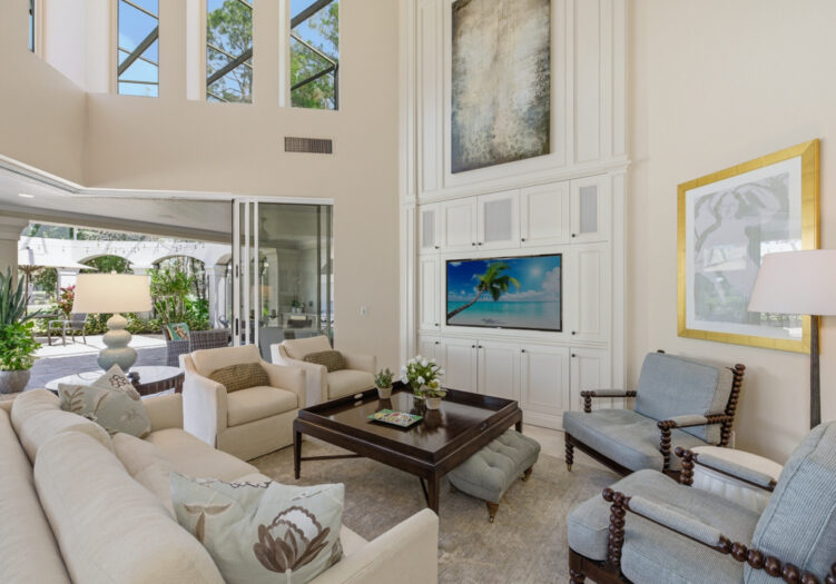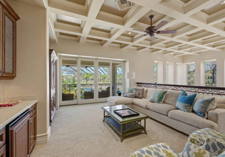 NO WAITING! GOLF MEMBERSHIP SLOT AVAILABLE IMMEDIATELY! NEW ROOF 2024. NEW A/C UNITS 2026. Experience the pinnacle of Naples luxury living in this extraordinary two-story estate, perfectly positioned within the prestigious Mediterra community to capture picturesque golf course and shimmering lake vistas. This masterpiece of inspired architecture is defined by volume coffered and tray ceilings, exquisite crown moldings, and elegant architectural niches that signal a refined, bespoke lifestyle. The grand-scale living and family rooms feature zero-corner sliding doors that dissolve the barrier between the sophisticated interiors and the tropical landscape. Culinary enthusiasts will marvel at the gourmet eat-in kitchen, a showcase of high-end design featuring a center island, walk-in pantry, and a suite of professional-grade GE Monogram appliances, including double ovens and a gas cooktop. An adjacent breakfast nook and a full wet bar with a dedicated wine cooler ensure effortless entertaining. The primary sanctuary is a masterclass in luxury, offering a private seating area, direct outdoor access, and a morning bar/coffee station for serene starts to the day. It is complemented by dual "his and hers" walk-in closets with extensive custom-built-ins. The spa-inspired primary bath is a true retreat, featuring dual sinks, a bidet, a jetted soaking tub, a walk-in shower, and a private, lushly landscaped courtyard that brings nature into your daily ritual. For professional pursuits, the den/home office provides a quiet workspace with rich wood built-in desks and cabinetry. Ascend to the second-story loft, a versatile entertaining hub with a full wet bar, refrigerator, and a wrap-around balcony overlooking the grounds. With four additional guest suites and a flexible storage/media room, the home offers unparalleled space for family and distinguished guests. The outdoor living area is a screened paradise, featuring a summer kitchen with a built-in gas grill, fridge, and sink, alongside a sparkling pool and spa with waterfall accents and a full pool bath. Convenient additions are found in the three-car air-conditioned garage, including built-in cabinetry, a central vacuum, and a water treatment system. Mediterra is a prestigious luxury golf & country club community featuring Two championship Tom-Fazio golf courses for avid golfers, multiple tennis courts, pickle-ball & bocce, fitness center, pristine bike & jogging trails, and luxurious dining at the private country club restaurant. The Mediterra Beach Club offers an escape to a 10,000 sq. ft two-story private oceanfront paradise on the Gulf of Mexico. Featuring a restaurant & bar that serves members via indoor & outdoor dining, this private facility boasts a heated swimming pool, a sundeck, and cabana beach service for chairs, umbrellas & refreshments.