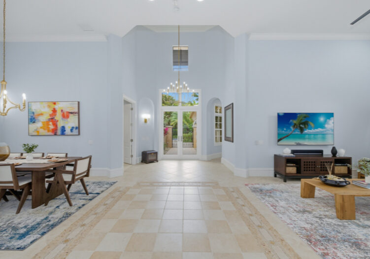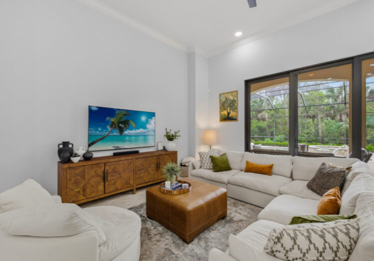 Located in the renowned Mediterra golf & beach club community of Naples, Fl. A striking single-story residence offering refined scale, architectural grandeur, and an effortless indoor-outdoor lifestyle. From the moment you enter, the home exudes openness and sophistication, with soaring volume ceilings, graceful archways, and expansive sightlines that create an immediate sense of presence and light. Designed for both elegant entertaining and everyday comfort, the interior features formal living and dining spaces, along with a generously proportioned family room anchored by tray ceilings and walls of glass. Large-format windows and stacking sliders invite natural light throughout and open seamlessly to the screened lanai, blurring the line between interior living and the serene preserve backdrop beyond. The gourmet kitchen is thoughtfully appointed with stainless steel appliances, a natural gas cooktop, double ovens, abundant cabinetry, granite countertops, a built-in bar area, and a sunlit breakfast nook overlooking the outdoor living space—perfectly positioned for both casual mornings and refined gatherings. Privately situated, the primary suite serves as a true retreat, featuring a spacious bedroom with a sitting area, dual walk-in closets, and a spa-inspired bath with dual vanities, a soaking tub, and a walk-in shower. Two guest suites provide comfort and privacy for visitors, while a dedicated den or home office adds flexibility for modern living. Outdoor living is elevated with a covered loggia, fully equipped outdoor kitchen, and a screened pool and spillover spa—creating an inviting setting for entertaining or unwinding amid lush tropical preserve views. Additional highlights include diagonal tile flooring with decorative mosaic accents, crown moldings, vaulted and tray ceilings, a well-appointed laundry room, and an attached three-car garage with excellent storage. A residence that delivers scale, refinement, and a true sense of arrival—crafted for those who appreciate architectural presence and elevated Florida living. Mediterra is a prestigious luxury golf & beach club community featuring two championship Tom Fazio golf courses for avid golfers, a private beach club with a restaurant & bar, multiple tennis courts, pickleball & bocce, a fitness center, pristine bike & jogging trails, and luxurious dining at the private country club restaurant. The Mediterra Beach Club offers an escape to a 10,000 sq. ft two-story private oceanfront paradise on the Gulf of Mexico. Featuring a restaurant & bar that serves members via indoor & outdoor dining, this private facility boasts a heated swimming pool, a sundeck, and cabana beach service for chairs, umbrellas & refreshments.