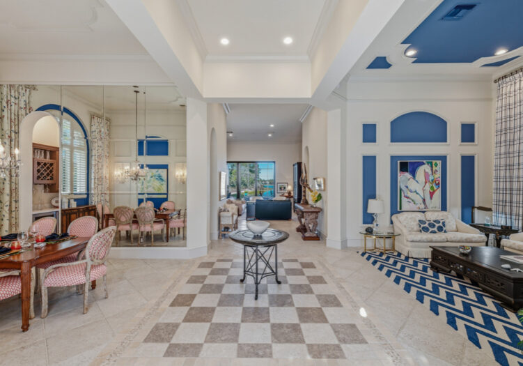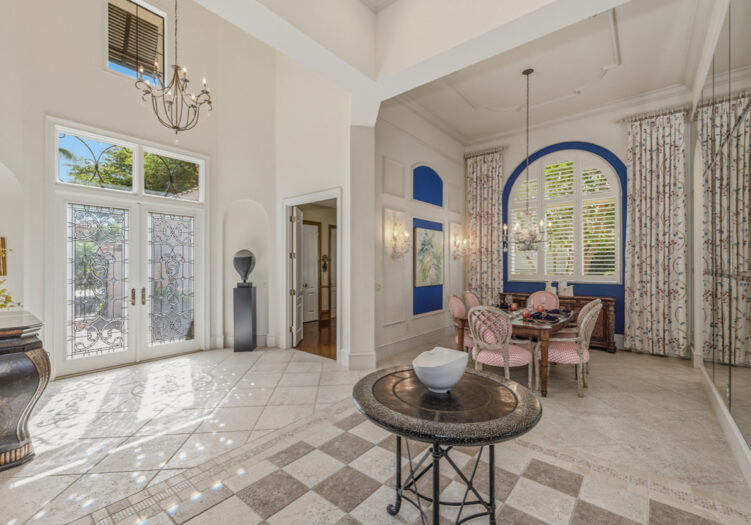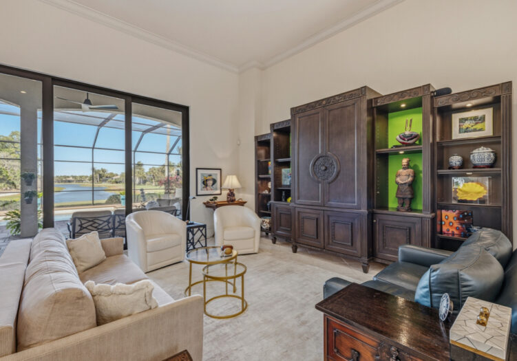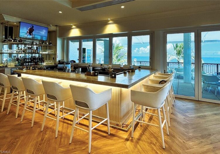 GOLF MEMBERSHIP AVAILABLE IMMEDIATELY. NEWLY RENOVATED PRIVATE BEACH CLUB IN MEDITERRA. Beyond the private entry courtyard of this stunning home, stroll through beautiful glass french doors that open into an expanded foyer with a soaring high ceiling & brightened flooring, leading the way to the stately formal living & dining rooms. Highlights include a gourmet kitchen with premium stainless steel appliances, breakfast bar, butler’s pantry, wine cooler, waterfall center island with white quartz countertops, gold accent finishes, and new lighting. Stacking sliders in the great room, with a light, neutral paint palette to accentuate the expansive lake view. The primary suite features a sitting area & private outdoor access. The primary bath is a haven with dual vanities, a soaking tub, and a glass-encased shower. Two guest suites come complete with private baths & marble countertops. The office has been updated with a neutral palette & LED lighting for the wood built-ins. It is ideal for entertaining with a summer kitchen, outdoor gas fireplace, custom pool & spillover spa with fountains. Additional updates include a contemporary-style powder room & laundry room with Quartz counters, 3-car garage with extensive built-ins & tankless water heater. Mediterra is a prestigious luxury golf & country club community featuring Two championship Tom-Fazio golf courses for avid golfers, a private beach club with restaurant & bar, multiple tennis courts, pickle-ball & bocce, fitness center, pristine bike & jogging trails, and luxurious dining at the private country club restaurant. The Mediterra Beach Club offers an escape to a 10,000 sq. ft two-story private oceanfront paradise on the Gulf of Mexico. Featuring a restaurant & bar that serves members via indoor & outdoor dining, this private facility boasts a heated swimming pool, a sundeck, and cabana beach service for chairs, umbrellas & refreshments.